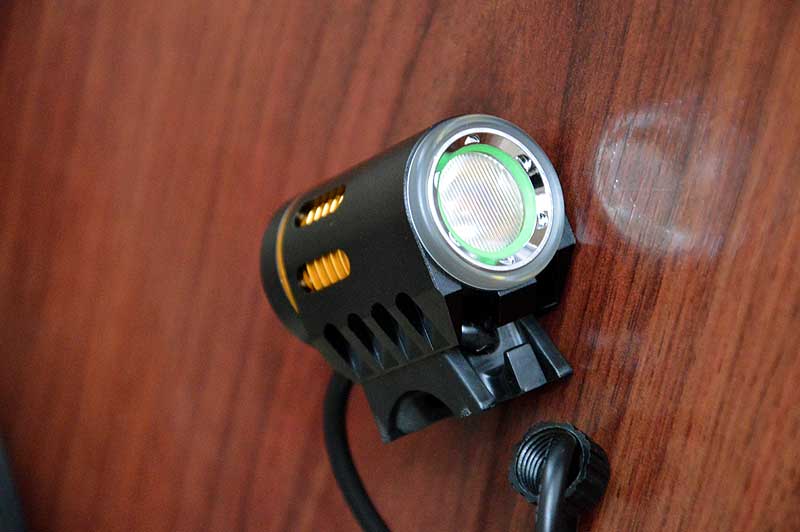 Like so many of these lights, they come with a half round plastic mount that uses o-rings to hold it onto either the bars or an adapter for helmet mounting. The o-ring mount is pretty ordinary for use off-road and will move back and forward in the rough.