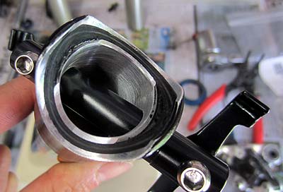The post seems well made and solid. There is aluminium reinforcing on the head both inside and outside the carbon seat tube. This is the primary failure point for these types of seat posts so its good to see some solid reinforcing here.