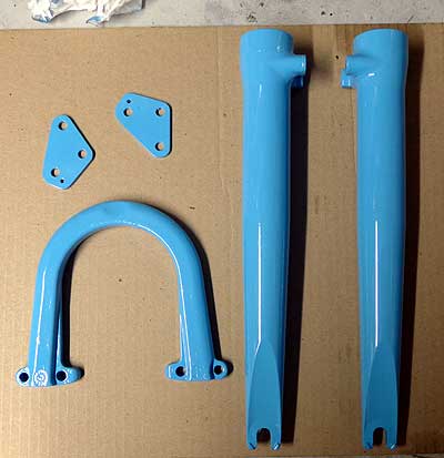 I kept the paint coat thickness to the absolute minimum because I was concerned that the magnesium might outgas and eventually lifting the paint. I also didn't want to add a lot of useless weight to the fork in paint.